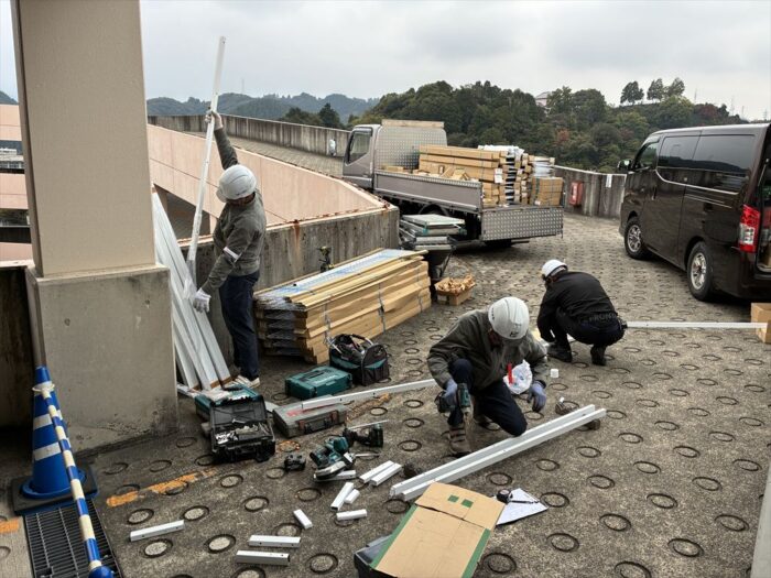 本日は、3階スロープエリアのフェンス新設工事を行っているようです。